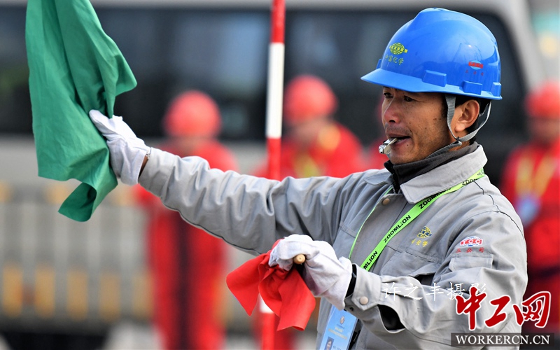 2018年12月13日,“中联重科杯”第五届全国吊装职业技能竞赛在湖南长沙的中联重科麓谷工业园举行。来自全国不同行业的吊装能手共23支代表队92名队员参加了比赛。使用中联重科提供的260吨ZCC2600履带起重机,经过近3天的激烈角逐落下帷幕,最终中国电建山东电建一公司、中石化起运公司、中国电建核电公司代表队分别获得前三名。图为比赛中各队的总指挥。工人日报-中工网记者许之丰湖南长沙摄影报道