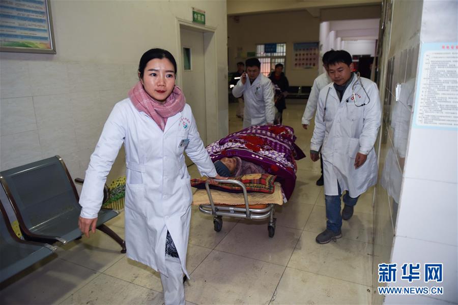 12月16日,在地震中受伤的群众被送到兴文县周家镇卫生院接受救治。 新华社发(张可凡 摄)