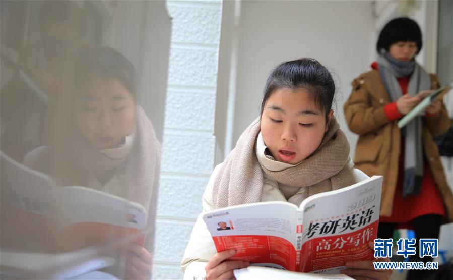 12月16日,在位于湖南省衡阳市的南华大学,考研学生在图书馆内看书复习。