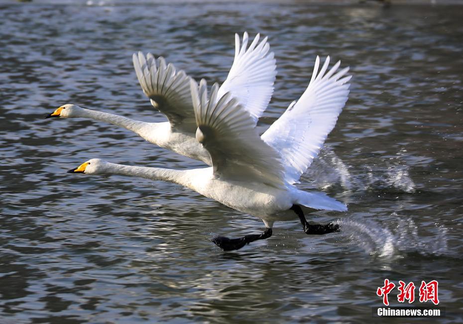 12月17日,新疆巴州库尔勒市杜鹃河面上热闹非凡,美丽的天鹅、成群的野鸭、飞翔的海鸟一同在杜鹃河中嬉戏打闹、时而飞翔觅食、时而翩翩起舞,犹如美丽的舞者,勾勒出一幅人与自然和谐共处的美丽画卷。据了解,每年的初冬时节来自远方的天鹅、野鸭等候鸟都会选择来到这里越冬。罗兴仓 摄