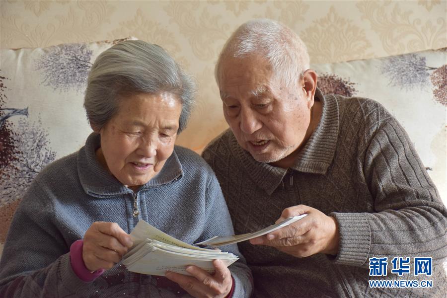 刘铭庭与妻子在乌鲁木齐家中翻看过去的照片(12月10日摄)。