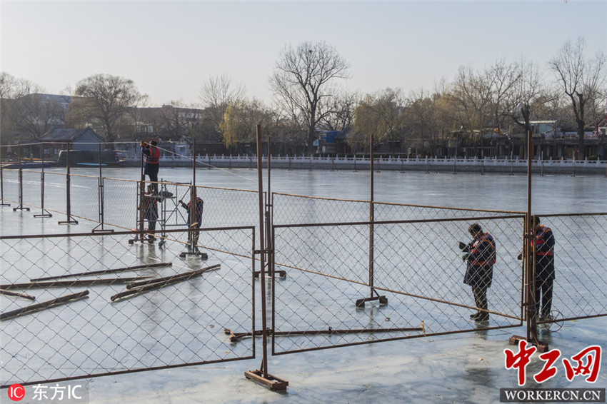 2018年12月18日,北京,什刹海冰场正在紧锣密鼓的建设中,建成后需报有关部门验收达到要求后对市民开放。赵熔 摄