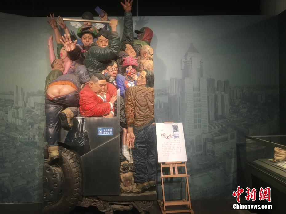 反映上世纪武汉挤公交场景的艺术雕塑。武一力 摄