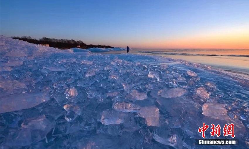 中俄最大界湖兴凯湖现“梦幻蓝冰”醉人美景