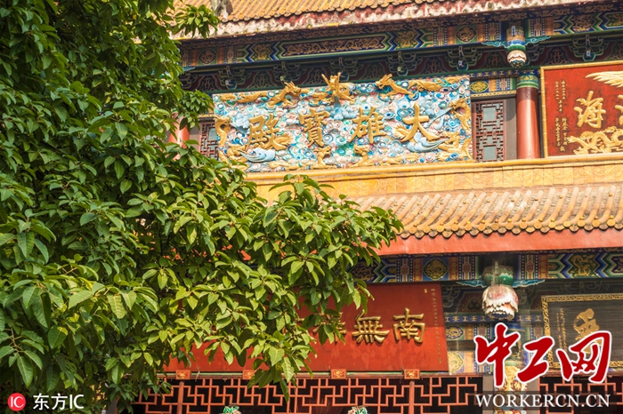 2018年12月17日,四川成都。位于成都昭觉寺内的有颗300岁的古黄葛树,是成都城区最大的古树,被称为“天府树王”之一。传说200年前,昭觉寺的一位僧侣在黄桷树下立有一碑,上刻有昭觉寺的历史背景,经过百年风雨,黄桷树不停地生长,将石碑融入树干中了,所以又叫“树抱碑”。