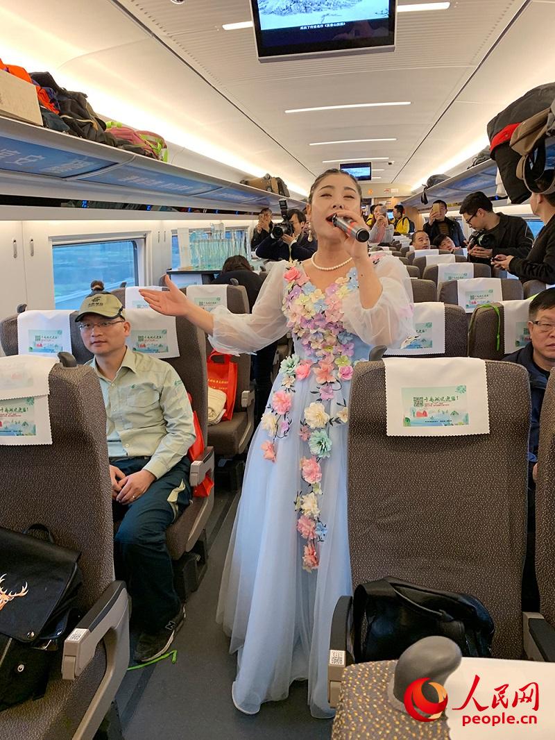 淳安县主题车厢内的歌唱表演。人民网 陈羽摄