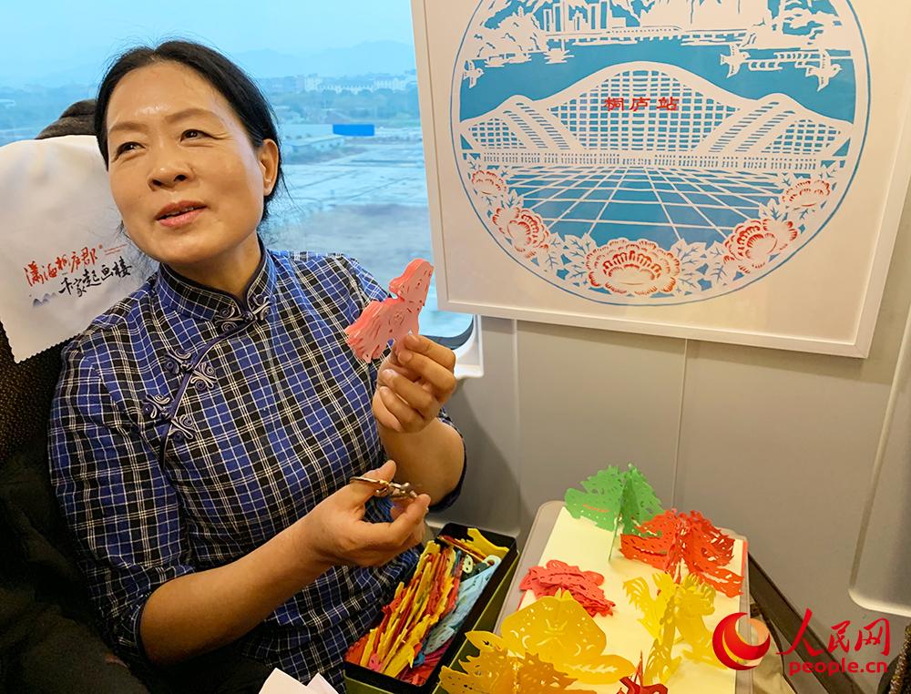 桐庐县主题车厢内的手工艺展示。人民网 陈羽摄