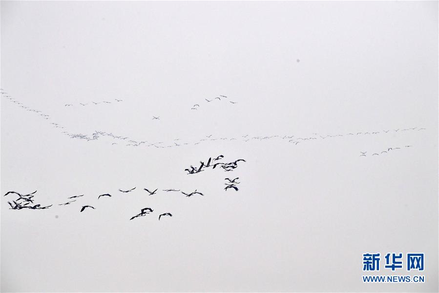 这是12月25日在河南省长垣县境内的黄河湿地拍摄的灰鹤。 位于河南省长垣县境内的黄河湿地,是候鸟重要的中转地和栖息地。每年在此停留、栖息的候鸟达十余万只。 新华社记者 冯大鹏摄