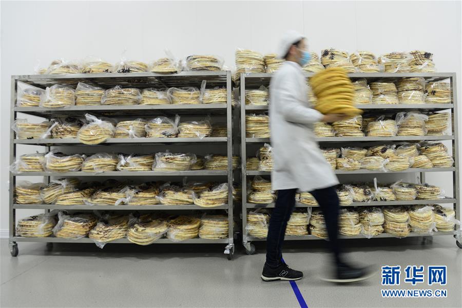 12月25日,在乌鲁木齐市馕文化产业园,工作人员运送刚做出的馕。 近日,乌鲁木齐市馕文化产业园全面投产。通过“电商+实体”销售模式,乌鲁木齐市馕文化产业园建立线上线下全方位营销体系,促进馕产品外销。 作为乌鲁木齐市一项民生工程,乌鲁木齐市馕文化产业园建设项目带动1000余人就业,有效助力脱贫攻坚。 新华社发(丁磊 摄)