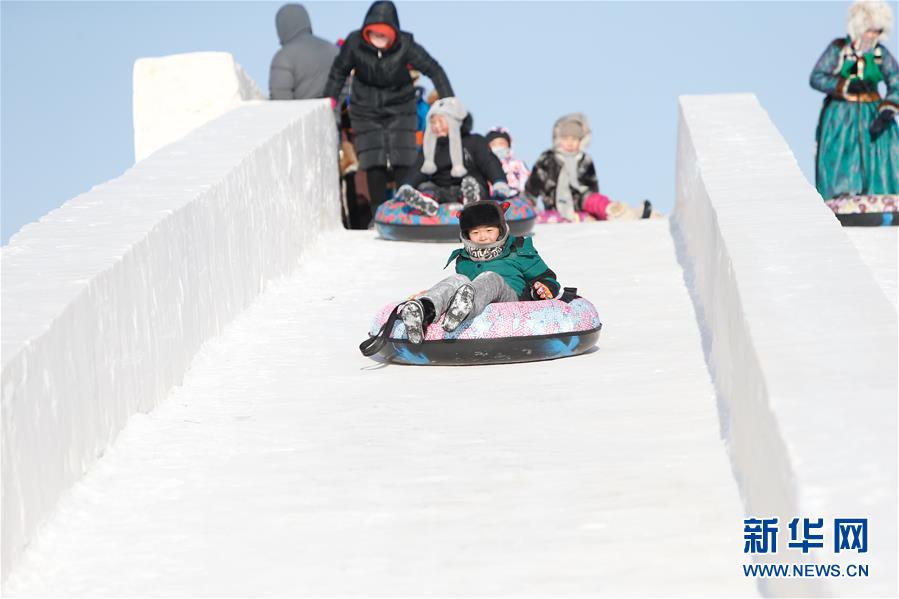 12月26日,小朋友在玩雪滑梯。 当日,内蒙古冰雪那达慕系列活动在呼伦贝尔市鄂温克旗继续进行,牧民欢聚一堂,参加各种赛事和趣味项目。 新华社记者 虞东升 摄