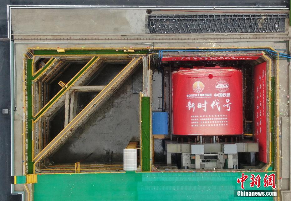 12月26日,随着一声“始发掘进”高声口令,巨大圆柱形“新时代号”盾构机前方刀盘徐徐转动,开启了它的长江江底“穿越”之旅。当日,由中铁十四局集团承建的南京长江第五大桥A3标夹江隧道工程始发掘进,这标志着开挖直径达15.46米的国内大直径公路盾构隧道进入主体施工阶段。据介绍,该隧道工程全长1159米,设计为两孔双向六车道,行车速度80公里/小时。而穿江“利器”盾构机整机长140米,总重达3500余吨,具备常压换刀功能,共安装了237把不同类型刀具,其中有1/3的刀具可进行常压换刀。中新社记者 泱波 摄