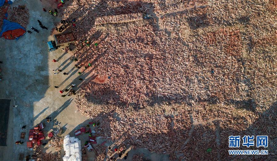 12月27日,在吉林松原查干湖渔场,工人们将鱼装箱(无人机拍摄)。 随着吉林松原查干湖冬捕知名度不断提高,全国各地消费者对查干湖鱼的需求量逐年增大。2014年开始,多个电商平台和快递企业纷纷抓住商机进驻查干湖。经过多年发展,借助互联网销售优势和日趋完善的快递网络,全国多地的百姓可以在鱼出水后的48小时内品尝到查干湖鱼的鲜美滋味。 新华社记者张楠摄