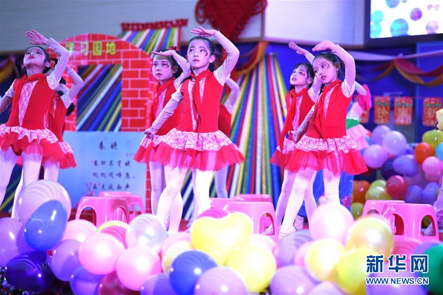 12月28日,合肥一六八玫瑰园学校二(2)班学生在表演舞蹈《春晓》。当日,安徽合肥一六八玫瑰园学校举行第七届校园文化艺术节汇报演出。学生们表演音乐、舞蹈、戏曲等节目,迎接新年的到来。新华社记者 刘军喜 摄