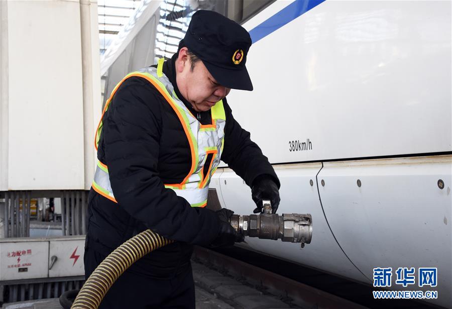 寒冬时节,北京动车段北京南站吸污组职工坚守岗位,保证动车组卫生间的正常使用。据了解,北京动车段北京南站吸污组共有职工18名,负责北京南站折返或者终到动车组的吸污工作。吸污组采用每天两组轮换的工作方式,每组每天工作8至9个小时,一次在户外工作3小时左右,每天平均清理列车22列。
