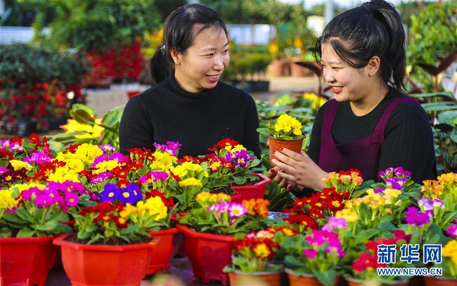 12月29日,顾客在永清县恒都美业花市选购盆栽报春花。 元旦将至,河北省永清县的花卉市场买卖红火。近年来,永清县调整农业产业结构,发展花卉产业,已建成占地3万余平方米的大型室内花卉市场,入驻花商200余家,带动全县鲜花种植规模达1万余亩,年产值超过1亿元。 新华社记者 李晓果 摄