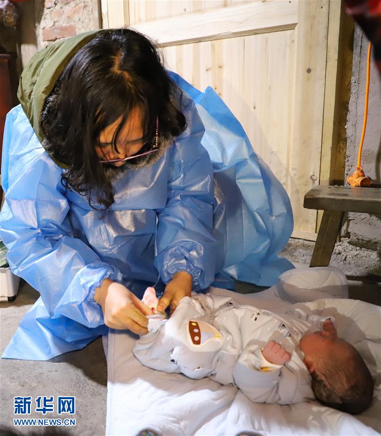 12月30日凌晨4时24分,在贵州省丹寨县扬武镇干改村党卡苗寨,妇产科医生在给婴儿穿保暖衣服。