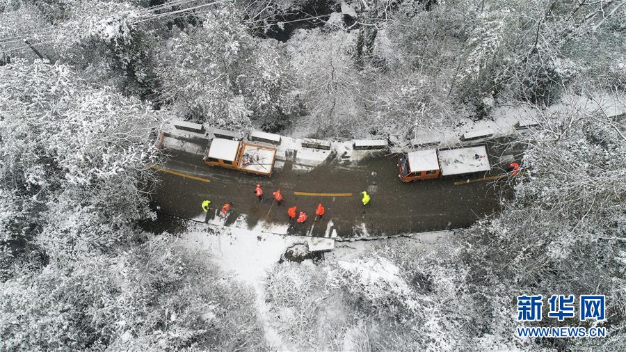 12月30日,江西省宜春市万载县公路分局三兴道班养护人员在辖区清除公路积雪。近日,我国多地迎来降雪天气,各地公路、环卫、公安交警等部门积极采取应对措施,保障交通安全。新华社发(邓龙华 摄)