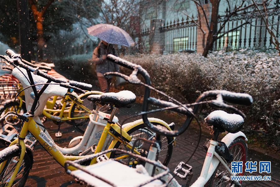 12月30日,行人在浙江杭州市西湖区西斗门路冒雪前行。 新华社发(殷晓圣 摄)