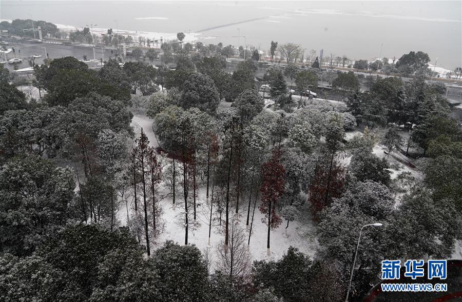 12月30日在江西南昌拍摄的雪后红谷滩赣江边。 新华社记者 宋振平 摄