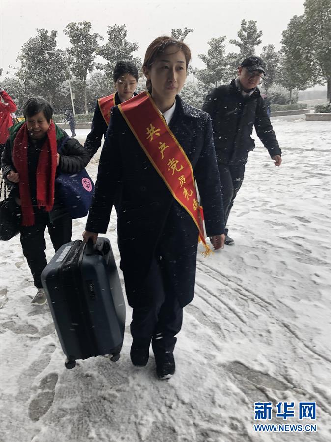 12月30日,江西南昌西站志愿者在护送旅客进站。 新华社记者 宋振平 摄