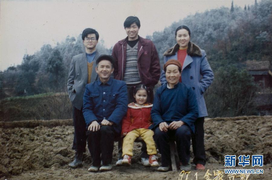 1997年1月,在贵州省榕江县崇义乡大塘村,姐姐带着大外甥女回老家过节,黄万鑫(后排左一)用家里卖掉一头猪买下的照相机拍摄全家福(2018年12月10日翻拍)。 新华社发 黄万鑫 摄 图片来源:新华网