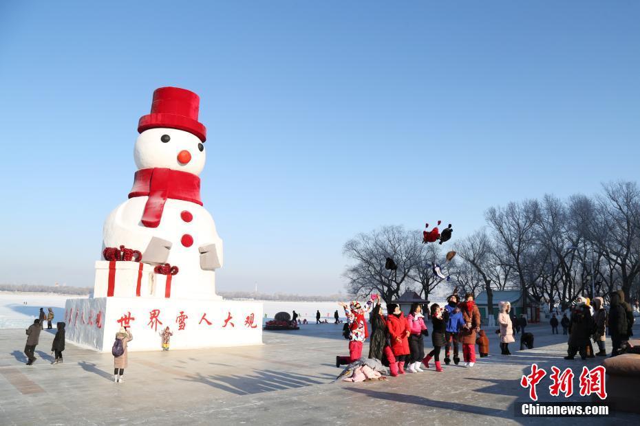 “雪人大观”亮相松花江畔 20米高超大雪人吸引游客