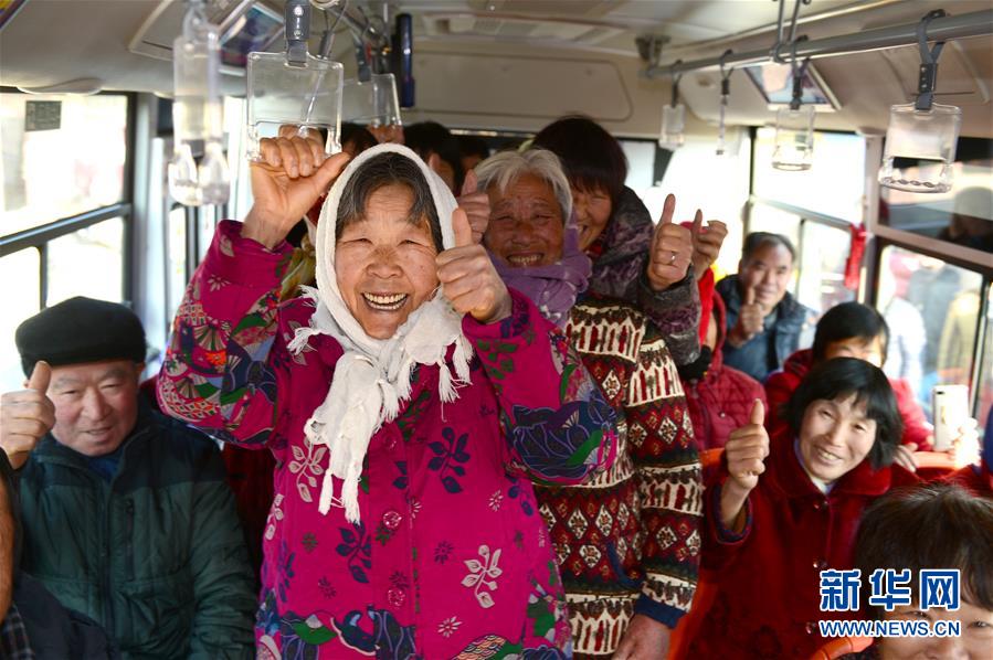 1月2日,荣成市王连街道客岭村的村民乘坐大客车出行。
