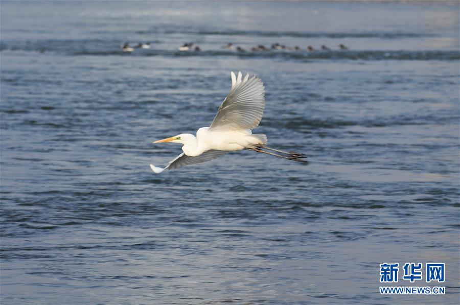 1月2日,在黄河兰州段,一只水鸟在空中飞翔。 隆冬时节,随着黄河上游生态环境的不断改善,越来越多的水鸟来到甘肃省兰州市的黄河段越冬。 新华社记者 范培珅 摄