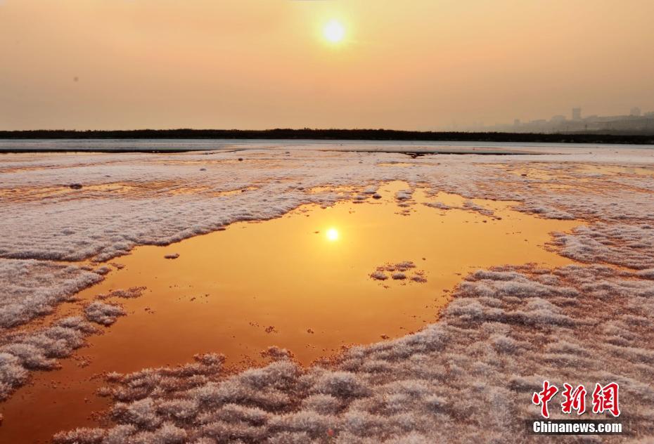 山西运城盐湖绽放美丽“硝花”