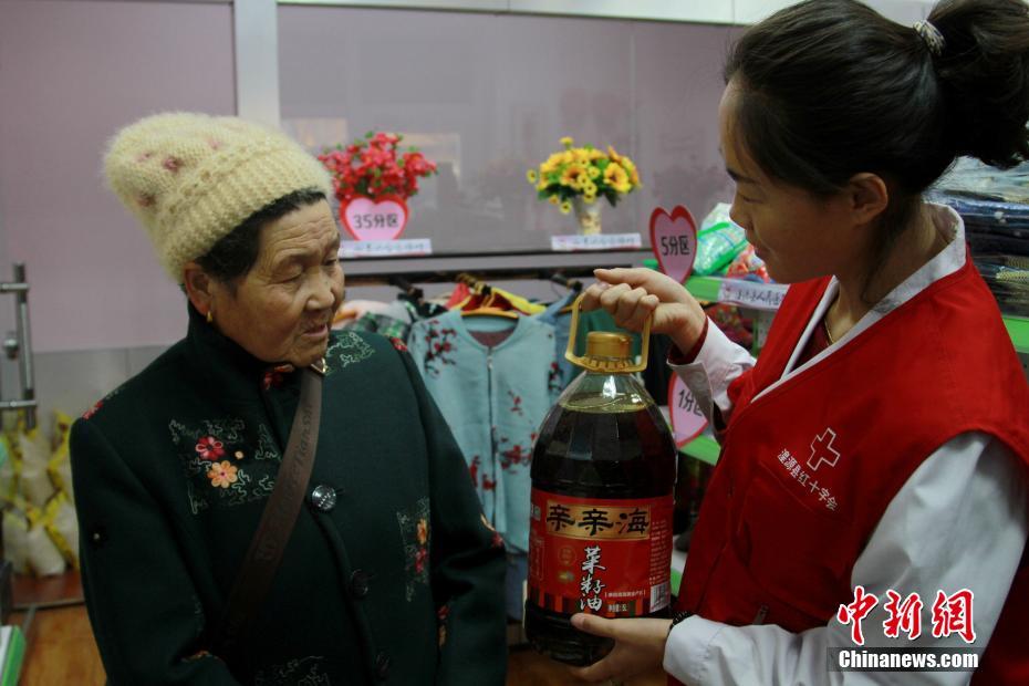 1月3日,贫困户在青海省首家爱心超市内挑选商品。据了解,该超市位于青海省西宁市湟源县境内,超市内的商品都来自社会捐赠,湟源县下辖各乡镇的贫困户可以通过劳动兑换积分,再用积分兑换各自所需的商品。中新社记者 李培源 摄