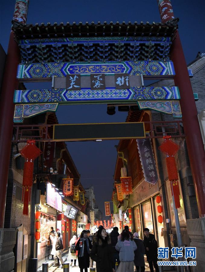 1月3日,游客在济南芙蓉街游玩。 位于济南老城区的芙蓉街有四百年的历史,是济南的一张旅游“名片”。近日,历经近两个月的封闭改造,焕然一新的芙蓉街重新对游客开放。芙蓉街改造工程重点对地下的管网、管线进行重新铺设,还对新泉、古水道、老石板路面进行保护。 新华社记者王凯摄