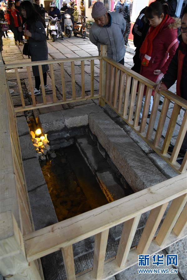 1月3日,游客在济南芙蓉街参观被保护起来的芙蓉泉。 位于济南老城区的芙蓉街有四百年的历史,是济南的一张旅游“名片”。近日,历经近两个月的封闭改造,焕然一新的芙蓉街重新对游客开放。芙蓉街改造工程重点对地下的管网、管线进行重新铺设,还对新泉、古水道、老石板路面进行保护。 新华社记者王凯摄