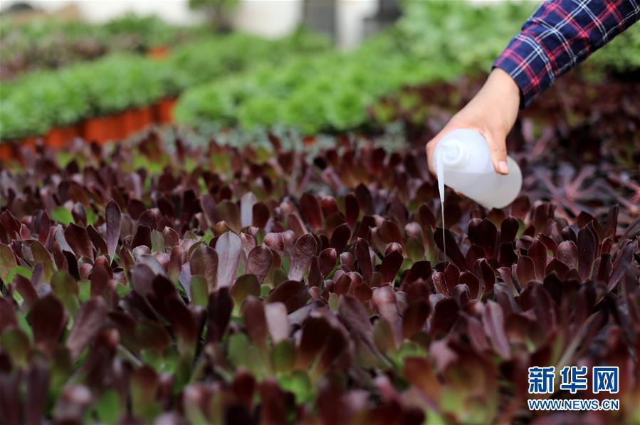 1月10日,刘振健在大棚里给多肉植物浇水。 新华社记者朱旭东摄