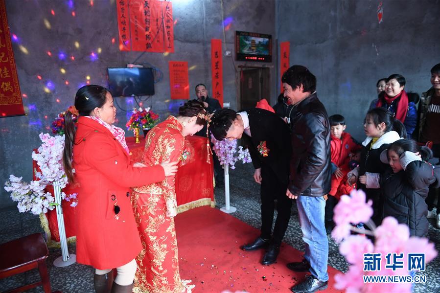 1月11日,黄林和新郎举行婚礼。 新华社记者 周密摄