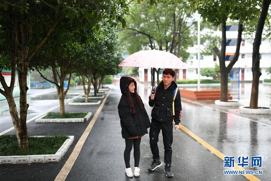 黄林来到桐木镇胜利中学接弟弟黄好放学(1月10日摄)。 新华社记者 周密摄