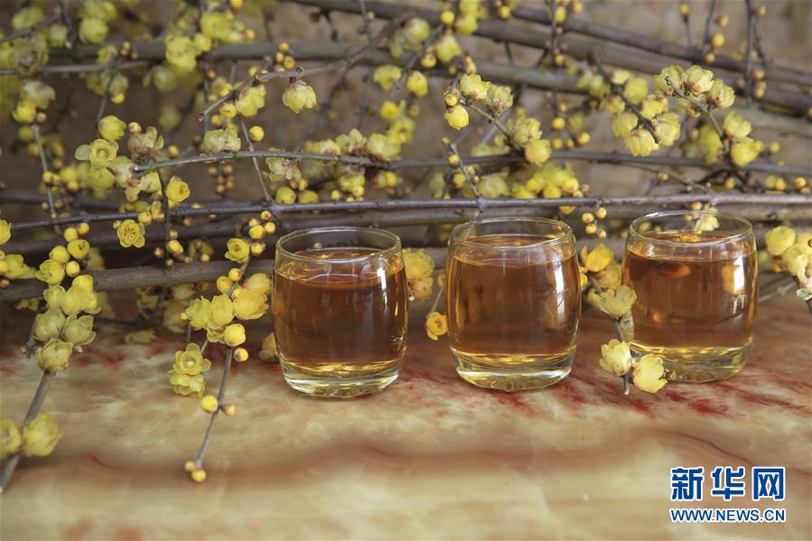 这是1月12日在重庆市北碚区静观镇拍摄的蜡梅花酒。新华社发(秦廷富 摄)