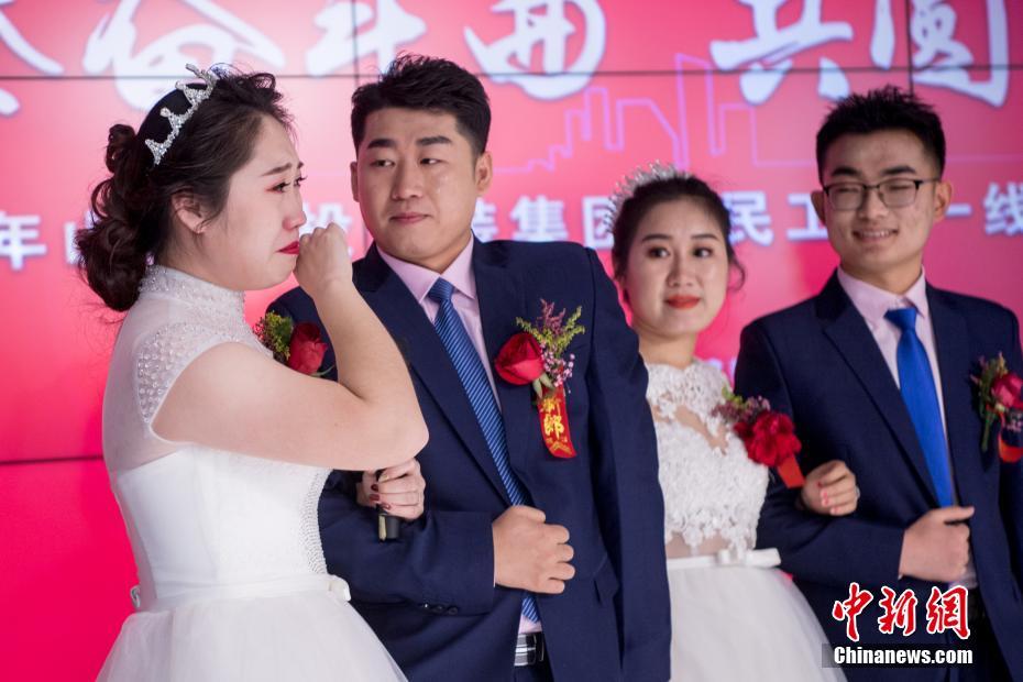 1月13日,山西建投安装集团农民工、一线职工集体婚礼,在山西转型综改示范区潇河园区建筑工地举行,常年随工程项目奔波在外的一线工人与他们的妻子共同接受了园区工人们的祝福。中新社记者 韦亮 摄