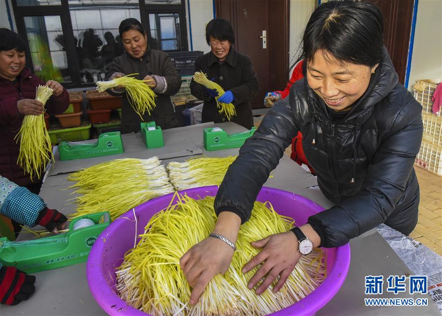 连日来,河北省深州市传统特产黄韭迎来收获季。近年来,深州市依托西安庄村一带的沙性土壤、独特水质和传统栽培技术,引导村民大力发展绿色无公害黄韭产业,促进农民增收。 新华社记者李晓果摄