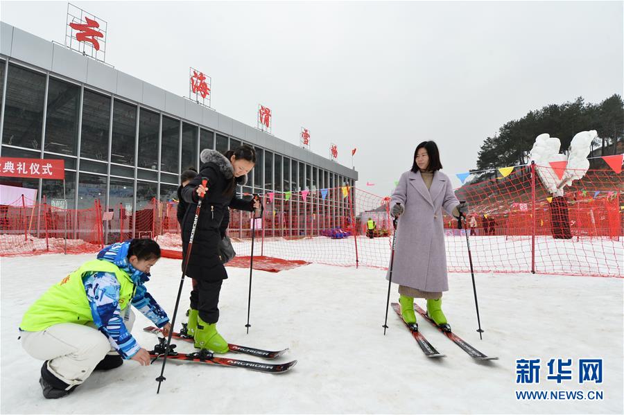 1月15日,游客在保康县过渡湾镇梅花寨云海滑雪场练习滑雪。新华社发(杨韬 摄)