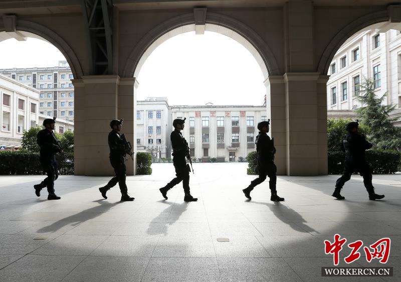 当日,武汉铁路特警在武汉市汉口火车站宣誓维护良好的铁路运输秩序,确保旅客走得了、走得好。