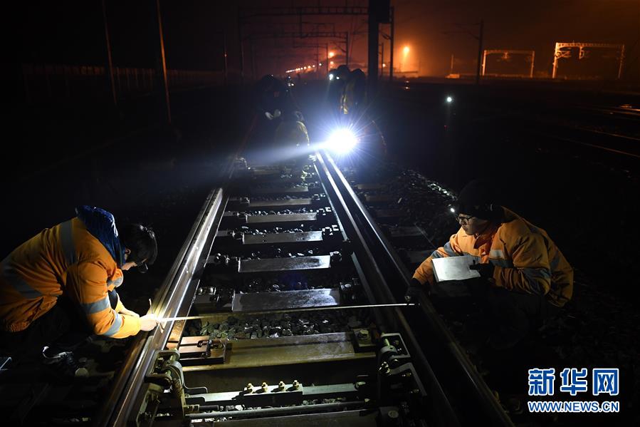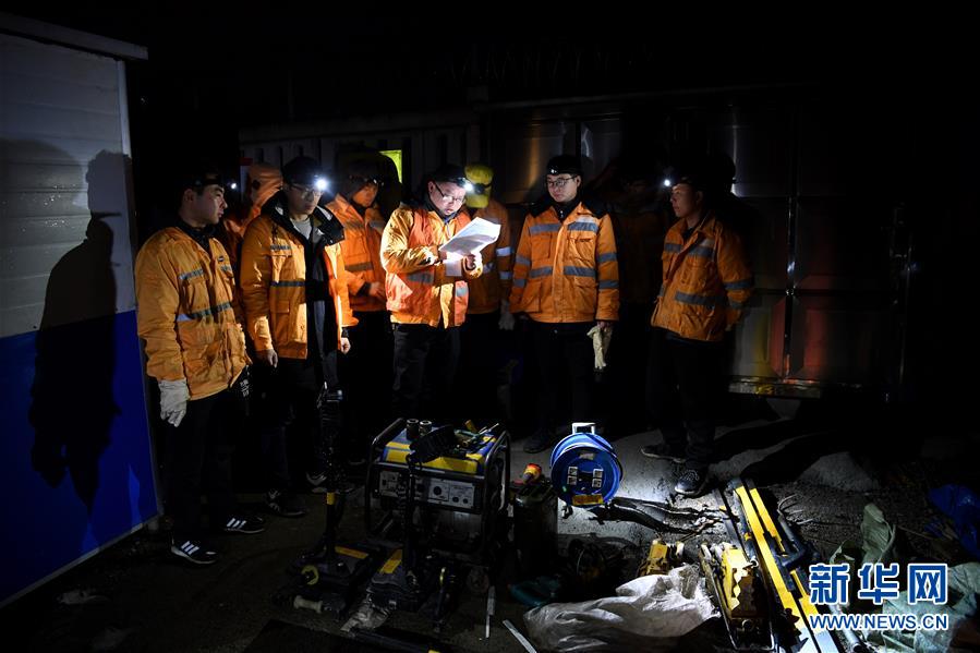 1月17日凌晨,中国铁路上海局集团有限公司芜湖工务段绩溪北综合维修工区的高铁线路工人来到杭黄高铁黄山北站内开始了4个小时的紧张忙碌。由于白天车次较多,高铁线路的维护只能在0点到4点列车停运的“天窗期”内进行。绩溪北综合维修工区是一个年轻的班组,在杭黄高铁开通运营前成立,多数线路工人都是“90后”。