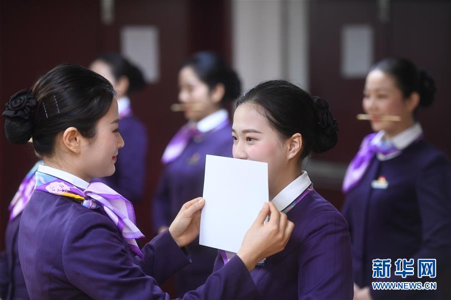 1月17日,杭州客运段乘务人员开展礼仪形体集中培训。 春运临近,中国铁路上海局集团有限公司杭州客运段组织动车组乘务人员进行职业礼仪、客运业务、服务技能、应急处置等方面的集中培训,以提升服务水平。 新华社记者 黄宗治 摄