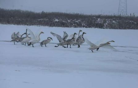 冬日新疆石河子北湖湿地天鹅雾天嬉戏飞翔添别样韵味