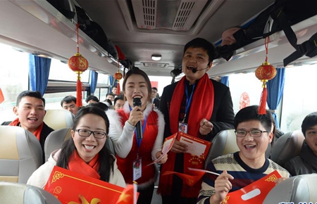 1月20日,在西安北站动车组列车上,列车长(右)指导留学生志愿者整理座椅头枕巾。当日,西安交通大学三名外国留学生志愿者来到西安北站,在中铁西安客运段工作人员指导下,熟悉动车组服务设施,了解高铁列车员工作流程。春运期间,外国留学生志愿者将登上西成高铁列车,与出乘班组共同服务旅客。新华社发(唐振江 摄)