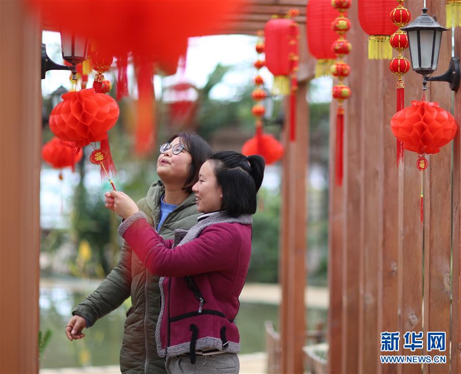 1月20日,游人在贵州省玉屏侗族自治县茶花泉景区观赏红灯笼。 新华社发(胡攀学 摄)