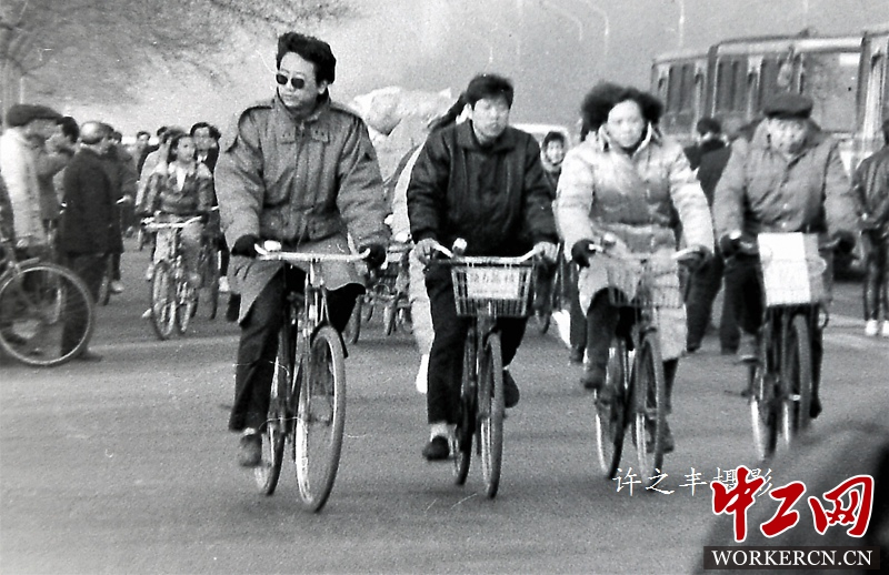 八十年代是改革开放的初期,人们出行上班主要交通工具就是自行车。当年,手表、缝纫机、自行车被称为家中的三大件,而中国也被称作自行车王国。图为1989年1月20日晨,北京西单路口的自行车大军。工人日报-中工网 许之丰摄影报道