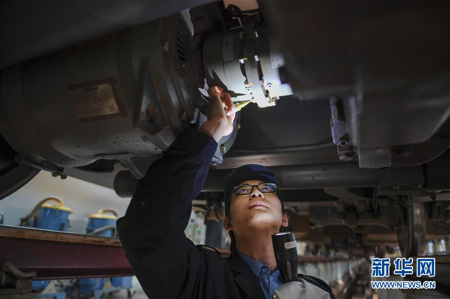 1月20日,在位于福州城北的动车检修车间,李长安在检修车辆。新华社记者宋为伟摄