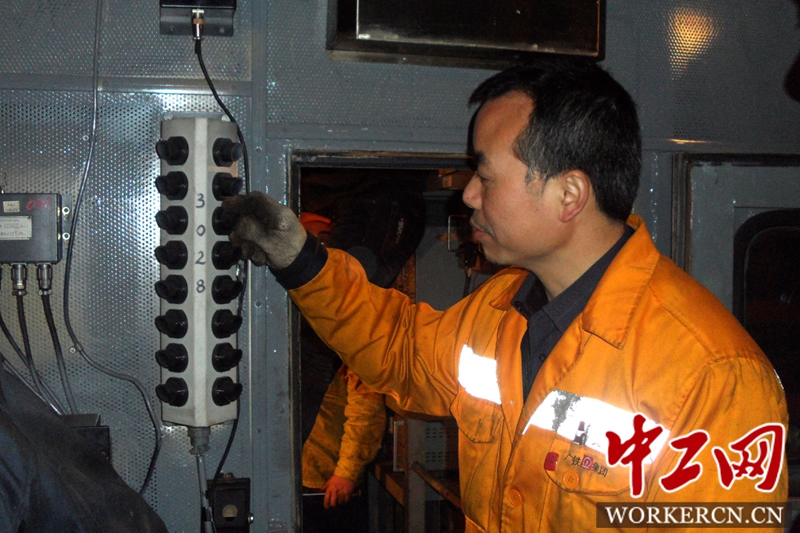 副工长刘永红检查中返整治的DF7机车设备状况,机车信号机的每个色灯他都不会放过,温和内敛的他是工区的“火眼金睛”(梁杰 摄影报道)