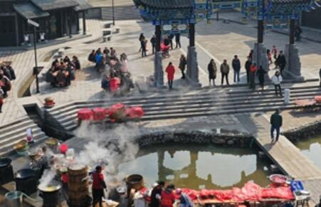 1月22日,何银祥(左一)在驾驶小船,他驾驶的小船是大船的动力来源。
