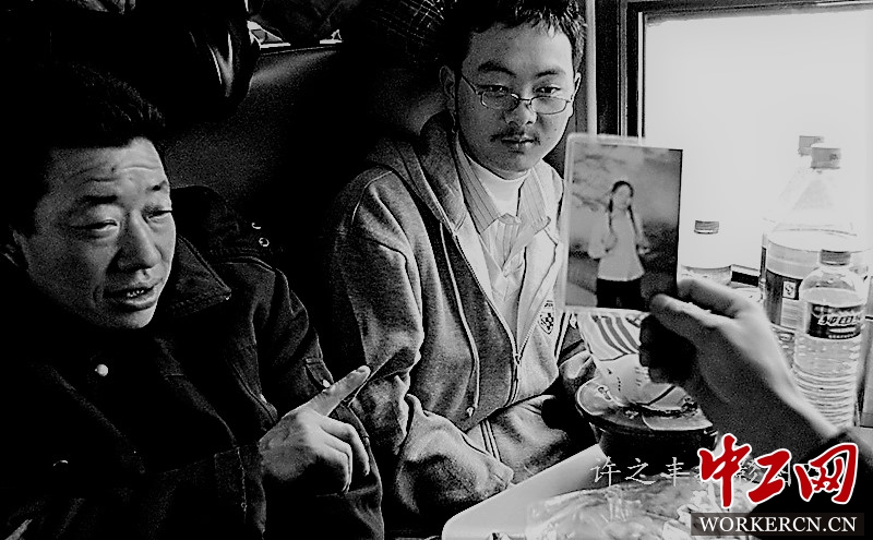 图四 张华泉(中)这是他第一年在北京打工,非常想家,特别想原来作为同班同学的女朋友。急不可耐的他拿出女朋友的照片给同伴们逐一欣赏。